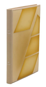 Indifférences, 1988. In-8, bradel box crème, plats recouverts de papier à décor géométrique, dos lisse avec titre à froid, couverture et dos, chemise et étui (Paule Ameline 1992).Édition originale illustrée de 7 estampes originales hors-texte de René Bonargent.