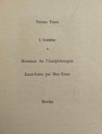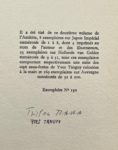 Tirage à 200 exemplaires, celui-ci un des 169 exemplaires sur auvergne, dont les 8 eaux-fortes de Max Ernst illustrant Monsieur AA L’Antiphilosophe sont ici signées par l’artiste. Chaque volume est signé par Tzara et l'artiste correspondant.