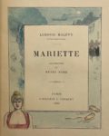 Paris, Conquet, 1893. In-8, maroquin bleu, encadrement floral de liseron mosaiqué et doré sur les plats; dos lisse orné de même, doublure et gardes de moire rose, tranches dorées, couverture conservée (P.-R. Rapalier).Ouvrage illustré de 41 compositions en couleurs d'Henry Somm, dont la couverture.