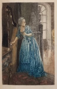 Paris, J. Chevrel, 1908. In-8, maroquin olive, plats ornés d'un encadrement de filets dorés, dos orné, doublure de même maroquin ornée d'un décor mosaïqué de maroquin gris et d'une guirlande florale dorée, gardes de soie à motif floral, doubles gardes, tranches dorées sur témoins, couverture et dos, étui (David 1912).Édition publiée d'après le texte original avec une étude sur Laclos et une bibliographie des Liaisons dangereuses par Ad. van Bever, ornée de 20 eaux-fortes originales de Martin van Maele.