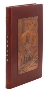Paris, Léon Pichon, 1922. In-4, box marron, premier plat orné d'une grande plaque en métal, dos lisse avec titre à froid, doublure et gardes de moire brune, tête dorée, non rogné, couverture et dos, étui (Reliure de l'époque).Belle édition imprimée avec les caractères gothiques de Jean Du Pré, ornée de 107 gravures originales sur bois d'Hermann-Paul formant des encadrements du texte.