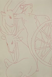 Lausanne, André et Pierre Gonin, 1960. In-folio, en feuilles, couverture illustrée, non rogné, chemise et étui de l'éditeur. Ouvrage illustré de 25 eaux-fortes en sanguine de Hans Erni, dont une en frontispice.
