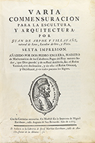 .1773.. LIBRO: .(ARQUITECTURA).. .ARPHE Y VILLAFAÑE, JUAN DE:. .VARIA COMMENSURACION PARA LA ESCULTURA, Y ARQUITECTURA POR.... Madrid: Imp. Miguél Escribano, 1773. 4º mayor. 2 h. + 298 p. Profus. ilustr. con xilografías en el texto. Ligera señal de óxido. Enc. en pergamino de época, lomera rotulada. Esta 6º edición lleva añadido el tratado de Pedro Enguera sobre relojes. Palau 16058.