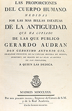 .1780.. LIBRO: .(ARTE).. .GIL, GERONIMO ANTONIO:. .LAS PROPORCIONES DEL CUERPO HUMANO, MEDIDAS POR LAS MAS BELLAS ESTATUAS DE LA ANTIGÜEDAD, QUE HA COPIADO DE LAS QUE PUBLICÓ GERARDO AUDRAN.... Madrid: Imp. Joachin Ibarra, 1780. Folio mayor. 1 h. +...