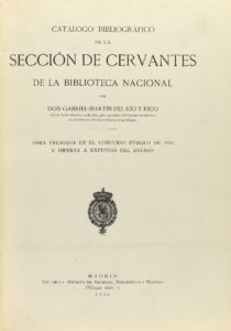 .1930.. LIBRO: .(BIBLIOGRAFÍA).. .RÍO Y RICO, GABRIEL-MARTÍN DEL:. .CATÁLOGO BIBLIOGRÁFICO SECCIÓN DE CERVANTES DE LA BIBLIOTECA NACIONAL.. Madrid: Revista de Archivos, Bibliotecas y Museos, 1930. 4º mayor. XVIII p. + 1 h. + 915 p. + 1 h....