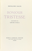 .1954.. LIBRO: .(BIBLIOFILIA-ENCUADERNACIÓN).. .SAGAN, FRANÇOISE; GRAU-SALA, EMILI [ILUSTR.]:. .BONOUR TRISTESSE. Gravures de Grau Sala.. Paris: Marcel Lubireau, 1954. 8º mayor. 177 p. + 1 h. Enc. por M. BUENO en media piel azul y papel al agua,...