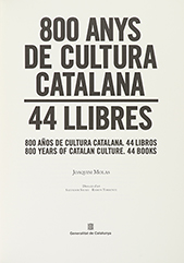 .2007.. LIBRO: .(BIBLIOGRAFÍA-CATALUNYA).. .MOLAS, JOAQUIM:. .800 ANYS DE CULTURA CATALANA. 44 LLLIBRES.. Barcelona: Generalitat de Catalunya, 2007. Folio mayor. 201 p. + 2 h. Profus. ilustr. con reproducciones a todo color. Enc. en tela edit. estampada, presentado en una petaca de cartoné, algo rozada.