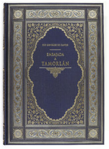 .2009.. LIBRO: .(BIBLIOFILIA).. .GONZÁLEZ DE CLAVIJO, RUY:. .EMBAJADA A TAMORLÁN (LA RUTA A SAMARCANDA).. Introducción José Manuel Herrero Massari. Adaptación del texto Rosa María Rivas Ramírez. Madrid: Ed. Guillermo Blázquez, 2009. XXXIX p. + 203 p. + 2 h. Profus. ilustr. en b/n y color, en el texto y fuera del texto. Enc. en tela de seda edit. estampada, presentado en petaca. Edición numerada de 500 ejemplares.