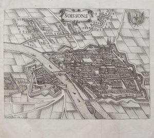 Cathedrale, et plusieurs recherches sur les Vicomtez & les Maisons illustres du Soissonnois. Soissons, Nicolas Asseline, 1663-1664. 2 volumes in-4, reliure XVIII. s. veau marbré, dos à 5 nerfs orné. Épi- dermure avec petit manque de cuir sur le mors supérieur du t. 2, deux pe- tits trous de vers en pied du même tome, légers frottements, coins plus ou moins usés. T. 1 : Titre, (12)-417-(12) pp. et un « Plan ancien de la ville de Soissons » dessiné et gravé par Lud. Barbaran placé en tête. T. 2 : Titre, (6)-578-(6) pp. et un plan dépliant de la ville de Soissons par Barbaran en tête du volume. Blasons gravés dans le texte sur l'Avis au lecteur et en page 1. Petites taches, rares rousseurs, qq. ff. brunis. Qq. annotations anciennes en marge. Ex-libris en page de titre : Le Brasseur chanoine de St Pierre de Soissons, deux autres caviardés. Bon exemplaire complet des deux plans gravés par Barbaran.