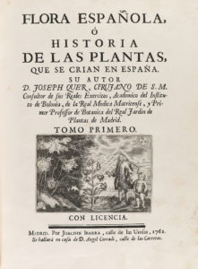 .1762-1764.. LIBRO: .(CIENCIAS-FLORA).. .QUER, JOSEPH:. .FLORA ESPAÑOLA, Ó HISTORIA DE LAS PLANTAS, QUE SE CRIAN EN ESPAÑA.