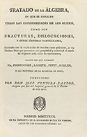 .1822.. LIBRO: .(CIENCIAS-ÁLGEBRA).. .VENTURA PASTOR, JOSÉ:. .TRATADO DE ÁLGEBRA, EN QUE SE EXPLICAN TODAS LAS ENFERMEDADES DE LOS HUESOS, COMO SON FRACTURAS, DISLOCACIONES, Y OTROS SÍNTOMAS PARTICULARES, ILUSTRACON LA EXPLICACION DE MUCHOS...