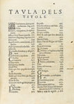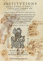 .1580.. LIBRO: .(DERECHO-VALENCIANO).. .TARAÇONA, PERE HIERONI:. .INSTITUCIONS DELS FURS, Y PRIVILEGIS DEL REGNE DE VALENCIA. EO SUMMARI E REPORTORI.. Valencia: Estampa de Pedro de Guete, 1580. 8º mayor. 6 h. + 414 p. + 1 h. Texto con apostillas...
