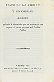 .1821.. FOLLETO: .(LEÓN).. .FIATE EN LA VÍRGEN Y NO CORRAS. ADÁGIO aplicado á cancelada por su moderacion con respecto á varias personas del crédito público.. Madrid: por Francisco Martinez Dávila, 1821. 8º mayor. 18 p. + 1 estado plegado....