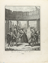 .1745.. GRABADO: .(CERVANTINA).. .COYPEL, CH.:. .4 GRABADOS DE EL QUIJOTE.. Papel: 28 x 22 cm, huella: 22 x 17 cm. Cuatro calcografías dibujadas por Ch. Coypel y grabados al cobre por J. V. Scheley. Un grabado algo deslucido. Procedentes de la edición francesa de las Aventuras de. D. Quijote.