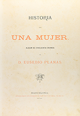 .1880.. LIBRO: .(GRABADOS).. .PLANAS, EUSEBIO:. .HISTORIA DE UNA MUJER.. Barcelona: Tip. Juan Aleu y Fugarull, 1880. Gran folio. Portada + 50 cromolitografías. Ligera señal de óxido al inicio y final de la obra. Enc. en media piel y puntas, con remaches metálicos y título dorado en el plano anterior.