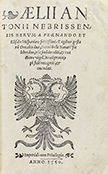 colofón): [Sancho y Sebastián Nebrija], 1550. 8º menor. Tipografía itálica. 18 h. + 213 fol. + 1 h. con la marca de los impresores nebrijenses xilografiada. Numerosos errores de foliación (Incluidos los útlimos folios donde numera folio 100 en lugar de 200), pero signatura completa. Letras capitales xilografiadas. Restauración bien realizada de una fina galería entre los fol. 119 a 149. Enc. moderna en plena piel, hierros secos en ambos planos y lomera, nervios, imita encuadernación renacentista. Palau 189344: ´Sánchez Alonso, en Historia de la Historiografía española, da a Nebrija mayor participación en la redacción del texto latino de la obra de Pulgar que otros autores´.