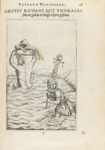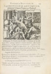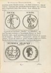 h. + 217 p. + 12 h. Bello frontis arquitectónico calcográfico y portada a dos tintas con marca tipográfica, mancha de tinta. Pequeña falta de papel marginal en p. 81 y 103; pequeñas rasgadura sin pérdida en la p. 210 y 212, en ningún caso afectan texto. [Sigue:] .DE CASTRAMETATIONE ET DISCIPLINA MILITARI ROMANORUM.. 88 p. [Sigue:] .DE BALNEIS ET ANTIQUIS EXERCITATIONIBUS GRAECORUM ET ROMANORUM.. 1 h. + 91-121 p. Texto con apostillas marginales. Bellamente. ilustr. con numerosas viñetas y láminas calcográficas en el texto, un estado plegado y capitales xilográficas. Restauración en la p. 113 y en la lám. plegada. Enc. en pasta española, con nervios, tejuelo y lomera cuajada. Es la primera traducción al latín de este conocido libro de religión, numismática, historia militar, baños e higiene pública de la antigua Roma. Los grabados se basan en los grabados xilográficos que ilustraban la versión original francesa, atribuida a Pierre Esckrih y que eran consideradas las mejores ilustraciones numismáticas del S. XVI.