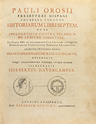 .1738.. LIBRO: .(HISTORIA).. .OROSII, PAULI:. .ADVERSUS PAGANUS HISTORIARUM LIBRI SEPTEM.. Lugduni Batavorum [Leiden]: Apud Gerardum Potuliet, 1738. 4º. 19 h. + 634 p. + 15 h. Portada a dos tintas. Profus. ilustr. con grabados en el texto. Enc. en...