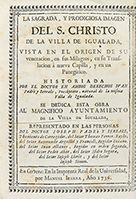 .1736.. LIBRO: .(LOCAL-IGUALADA).. .PADRÍ Y SERRALS, IOSEPH:. .LA SAGRADA, Y PRODIGIOSA IMAGEN DEL S. CHRISTO DE LA VILLA DE IGUALADA, VISTA EN EL ORIGEN DE SU VENERACION, EN SUS MILAGROS, EN SU TRANSLACION À NUEVA CAPILLA, Y EN UN PANEGIRICO.....