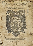 .1564.. LIBRO: .(CONCILIOS).. .CANONES, ET DECRETA SACROSANCTI OECUMENICI ET GENERALIS CONCILII TRIDENTINI, SUB PAULO III, IULIO III & PIO IIII, PONTIFICIBUS MAX.. Çaragoça: viudae Bartholomei a Nagera, 1564. 8 h. (de 16) + 92 fol. + 16 h. [Sigue:]...