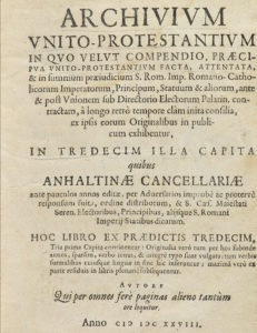 .1628-1629.. LIBRO: .(HISTORIA-PROTESTANTISMO).. .GEORGIUS, IOANNES:. .ARCHIVIUM PROTESTANTIUM IN QUO VELUT COMPENDIO, PRAENCIPIA UNITO PROTESTATIUM FACTA, ATTENTATA, & IN SUMMUM PRAEIUDICIUM.... Dresde: Bort und Bort, 1628-1629. 4 h. + 318 p. + 536...