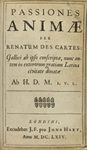 facsímil. III: .PASSIONES ANIMAE. .Id. 9 h. + 80 p. +3 h. Corto de márgenes. Texto con apostillas marginales. Tres partes enc. en pergamino de época en un vol. cortes pintados. Descartes fue el primer filósofo europeo en escribir en lengua vulgar, tenía gran interés en que todos le entendieran, está considerado el padre de la filosofía moderna.