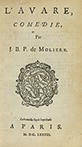 culs-de-lampe xilográficas. Portada a dos tintas con marca tipográfica. Esta obra incluye: L´Avare (1683); George Dandin (1684); L´imposteur ou le tartuffe (1684); Le Bourgeois gentilhomme (1688). Cada parte con frontis calcográfico y portada propia. Pequeña galería en el margen interior en algunas p. de la segunda mitad de la obra. Enc. en media piel.