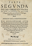 .1729 y 1658.. LIBRO: .(LITERATURA).. .QUEVEDO Y VILLEGAS, FRANCISCO DE:. .OBRAS.. Madrid: Pedro Joseph Alonso de Padilla, 1729. 8º mayor. Primera parte: 5 h. + 608 p. Texto a dos columnas Papel muy tostado. Algunos errores de paginación pero texto completo, portadilla remontada. Enc. en pergamino de época, suelto, con faltas y roturas. [Más:] .PARTE SEGUNDA DE LAS OBRAS EN PROSA DE... .Madrid: Melchor Sánchez, 1658. 8º mayor. 2 h. + 631 p. Texto a línea tirada. Papel tostado. Enc. en pergamino de época, semidesprendido y algo mareado. Primera y segunda parte de las obras completas de Quevedo, presentadas juntas pero de ediciones diferentes. Palau 243590 (para la primera parte) y 243573 (para la segunda parte) y CCPB 117947-0 (parte primera) y 41550-2 (para la segunda parte).