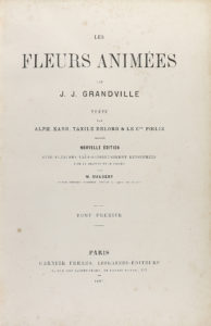 .1867.. LIBRO: .(LITERATURA).. .GRANDVILLE, J. J.:. .LES FLEURS ANIMEES. Texte par Alph. Karr, Taxile Delord & Le Cte Foelix. Avec planches par M. Maubert.. Paris: Garnier Frères, 1867. 2 vol. en 4º menor. I: Frontis + 340 p + 27 lám. II: Frontis...