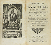.1738.. LIBRO: .(CERVANTINA-APÓCRIFO).. .FERNANDEZ DE AVELLANEDA, ALONSO:. .NOUVELLES AVANTURES DE L´ADMIRABLE DON QUICHOTTE DE LA MANCHE.. Paris: Compagnie des Libraires, 1738. 2 vol. en 8º. I: 447 p. + 9 lám. grabadas, incluido el frontis. II:...