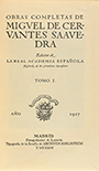 .1917-1923.. LIBRO: .(CERVANTINA).. .CERVANTES, MIGUEL DE:. .OBRAS COMPLETAS DE MIGUEL DE CERVANTES SAAVEDRA. EDICIÓN DE LA REAL ACADEMIA ESPAÑOLA. FACSIMILE DE LAS PRIMITIVAS IMPRESIONES.. Madrid: Tip. de la revista de Archivos bibliotecas y...