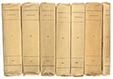 Museos, 1917-1923. 7 vol. en 4º menor. I: 2 h. + 1 retrato + LA GALATEA 8 h. + 375 fol. II: 2 h. + EL INGENIOSO HIDALGO DON QUIJOTE DE LA MANCHA 12 h. + 312 fol. + 8 h. III: 2 h. + EL INGENIOSO... SEGUNDA PARTE 2 h. + 8 h. + 280 fol. + 4 h. IV: 2 h. + NOVELAS EJEMPLARES 274 fol. V: 2 h. + COMEDIAS Y ENTREMESES 4 h. + 257 fol. + 1 h. VI: 2 h. + PERSILES Y SIGISMUNDA 2 h. + 226 fol. + 1 h. + VIAGE AL PARNASO 8 h. + 80 fol. VII: OBRAS SUELTAS 264 p. + 1 h. Todos sobre papel verjurado, todos intonsos. 7 vol. enc. en tela edit. Excepcional producción de la Real Academia Española con todas las primeras ediciones de las obras de Cervantes. Palau 51914. CCPB 659660-6.