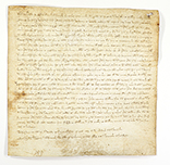.1321.. MANUSCRITO: .(GIRONA).. .DOCUMENTO NOTARIAL REFERENTE A UNA HERENCIA/DONACIÓN EN BRUNYOLA.. Texto manuscrito en latín. 29 x 29 cm. Documento notarial referente a una herencia de [Guillem Maso]. Signum notarial de Berengary Maso, dado en Brunyola 1321. Rasgadura restaurada.