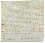 .1348.. MANUSCRITO: .(GAROZA-ÁVILA).. .DOCUMENTO DE VENTA DE UNA CASA EN GAROZA.. Manuscrito sobre pergamino de 22 x22 cm. Documento de venta de una casa a Juan Fernández en Garoza, ante el notario público de Ávila Miguel Hernández. Escrito en...