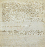 .1357.. MANUSCRITO: .(ARGENTONA).. .MANUSCRITO SOBRE PERGAMINO. TESTAMENTO.. 25 x 25 cm. Testamento de Guillem Mateu, marido de Alamanda, de Sant Julià d´Argentona, natural del mas Corçà de Sant Feliu de Cabrera. Pide ser enterrado al cementerio de Cabrera. Hace donaciones a los altares en construcción de Santa María de la iglesia de Cabrera y al de Sant Martí y Sant Llorenç d´Argentona. Notario Arnauyu de Pujol, presbítero de Argentona. Con signum notarial firmado el 29 de octubre de 1357.