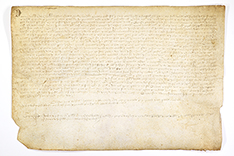 .1498.. MANUSCRITO: .(PERGAMINO-GIRONA).. .DOCUMENTO NOTARIAL REFERENTE A UNA PERMUTA EN LA PARROCHIA DE BRUNYOLA.. Texto manuscrito en latín, capital decorada. 32,5 x 48 cm. Documento referente a un trueque en Brunyola. Signum notarial de Jacobus Augustus. Brunyola, 1498. Rasgadura sin pérdida.