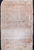 castillo mayor de Perpignan, natural de Vilafranca de Guipuzcoa, vende a Hugo de Vitoria, artillero en el castillo del Rey en Salses, una casa en dicha ciudad lindante con una vía pública. El manuscrito había sido encuadernación de un libro y presenta señales de ello: algunos pequeños orificios por donde se unía a los nervios de la obra que cubrió y la rotulación de la lomera. Ha perdido una pequeña parte del texto en el margen derecho al final de cada línea. Signum notarial de Petri Ros, 1528.