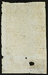 .1572.. MANUSCRITO: .(PERGAMINO).. .DOCUMENTO NOTARIAL REFERENTE A UN DONACIÓN EN LA VILLA DE [BARBERA ?].. Texto manuscrito en latín. 25,5 x 16 cm. Posible donación de Michael Costa en la villa de [Barbara?]. Sello húmedo al recto....