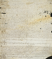 Figueras de Barcelona a Joan Grau d´Organyà. Signum notarial de Guillemi Garsi, dado en Barcelona en 1590. Pequeñas faltas.