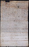 .1614.. LIBRO: .(PERGAMNO-GRANOLLERS).. .DOCUMENTO NOTARIAL REFERENTE AL CENSO DE MONTSERRAT NOGUERA PAYÉS DE UNA PARROCHIA DE SANCTI PETRI DE BIGUES.. Texto manuscrito en latín. 60 x 37 cm. Carta censal de las propiedades de Montserrat Noguera del mansi Noguera en la parrochia de Sancti Petri de Bigues [Bigues i Riells ?]. Signum notarial de Jacobi Josephi Bone; dado en Giranularius [Granollers] 1614.