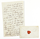 en una hoja de 18,5 x 12 cm. Con el sobre original manuscrito de 7 x 10 cm, sello de lacre ducal y dos sellos húmedos. Junio de 1842. Antiguas señales de doblez.