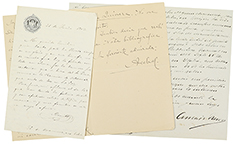 .1889-1909.. MANUSCRITO: .(EPISTOLAR).. .CONJUNTO DE CARTAS TODAS ELLAS DIRIGIDAS A EMILIA PARDO BAZÁN.. Diferentes tamaños que van de 8º a cuartilla. Varias firmas de literatos conocidos de la época: Acebal (Francisco), Amado Nervo y otra firmada Benito (presumiblemente Pérez Galdós, que escribe sobre Unamuno y un artículo que ella le dedicó en ´La Voz´). El resto de cartas son, en varios casos, contestaciones a cartas que primero había enviado la escritora, bien solicitando información, bien ayuda para documentar una nueva obra. Es el caso de la firmada por el erudito historiador mexicano Luís González Obregón, donde se ofrece a ayudar a la autora en lo que esté en su mano para su próxima obra sobre Hernando Cortés. Algunas cartas se conservan solo parcialmente, aunque la mayoría completas. El conjunto incluye además una misiva mecanografiada y fechada en 1909, escrita desde la Intendencia General de la Real Casa y Patrimonio, dándole permiso y acceso para estudiar los manuscritos e impresos relacionados con Hernán Cortés y México existentes en la Biblioteca Real. Muy interesante conjunto.