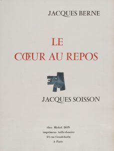 BERNE Jacques, SOISSON Jacques.Le cœur au repos. Paris, Michel Bon, 1980. Gd in-folio en ff. Tirage à 84 ex. 1/9 sur papier d’Auvergne, avec deux suites des aquatintes toutes signées et numérotées.