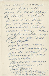retrouvé ma sacrée vue et repris le travail sur nature, ce qui m’est une joie sans pareille. Malheureusement je suis à la merci du temps qui n’est guère beau, et ne puis quitter un seul moment mon travail dans le seul espoir désiré. Il va s’en dire qu’un jour de mauvais temps nous irons vous surprendre, ne fut-ce qu’un instant »…
