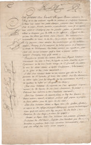 testaments postérieurs de Rigaud, en 1711, 1715, 1726, 1735 et 1741. .Ce testament, dicté au notaire Debeauvais, est l’exemplaire remis au testateur. Il institue divers legs dont, à l’Académie royale de peinture et de sculpture, « son portrait avec la bordure, et celluy de feu Mr Mignard », à Monseigneur le Dauphin « le buste de marbre blanc de damoiselle Marie Serre, sa mère, fait par Mr Coysevox » [maintenant au Louvre] ; il donne à son neveu Hyacinthe Rigaud le portrait de sa mère, dote aussi ses autres neveux et nièces, et choisit le Sieur Charles Collin professeur de mathématiques comme exécuteur testamentaire. Un paragraphe concernant le legs à Elisabeth Gouy, veuve Lejuge, d’une ferme à Vaux et de ses dépendances a été rayé (il ne figure pas sur l’exemplaire du Minutier). [Rigaud avait peint en 1699 le portrait de la famille Le Juge (Ottawa, Galerie nationale du Canada) ; il fera, vers 1707-1708, un portrait d’Elisabeth de Gouy, veuve Le Juge, avant de l’épouser le 17 mai 1710.]