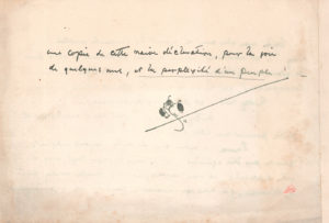 sait à qui adresser : « Déchiffrez, je vous prie, le nom distingué de mon correspondant, qui me cache son titre officiel et ses fonctions. Aidez-moi – et Dieu vous pardonnera ! Mettez tout ce qu’il faut sur l’enveloppe et faites parvenir ma lettre à sa destination. […] Soyons indiscrets […] et nous verrons – après le temps voulu par la décence, que nous connaissons – paraître dans le Figaro une copie de cette naïve déclaration, pour la joie de quelques-uns, et la perplexité d’un Peuple ! ».,,,.On joint 5 dessins par Madame Whistler, illustrant une lettre à propos de vases de Murano (2 pages in-8, cachet encre de Montesquiou).