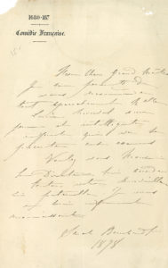 Sarah BERNHARDT. L.A.S., 1878, à « Mon cher grand Maître » ; 1 page in-8 à en-tête de la Comédie Française (petit accident)..Elle recommande « Lucie Arsonval une jeune et intelligente enfant qui va se présenter aux examens », et prie...