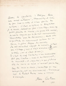 SPECTACLE. 22 P.A.S., certaines avec dessins, 1951-1952 ; 23 pages in-4 sur papier Ingres..Bel ensemble de textes et dessins sur le théâtre et la mise en scène..Marcel Achard (poème, Monologue de Diaghilev), Jean-Louis Barrault (dessin : il...