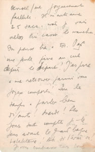 à son ami peintre..« Mon bon Popaul ! Comme je suis content d’avoir ta bonne babille. Je reste ici jusqu’à mardi – pour me refaire un peu la cerise. J’ai encore un peu mal au cassis. Merde ! Tu as vu les événements ? Quel fumier ! Denoël fait joyeusement faillite. Il m’entraine 25 sacs. Vrai je vais aller lui casser le manchon. Je pense bien à toi. Pas une seule pine au cul depuis le départ ? J’aspire à me retrouver parmi vous joyeux compères ! Que le temps à parler bien disants ! Merde ! Les jours sont comptés je le sens avant le grand bagne totalitaire ! Ah su j’avais su ! »…