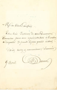 Alexandre DUMAS père. L.A.S., 9 avril, à un confrère ; sur 1 page in-8..« Est-ce bien indiscret de vous demander Romulus pour une représentation à bénéfice, à laquelle je prends le plus grand intérêt »….On joint un manuscrit...